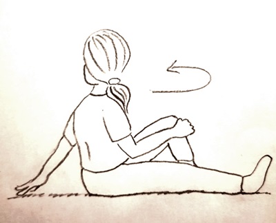 Sit on the floor, hold your left knee with your right hand and turn your back back