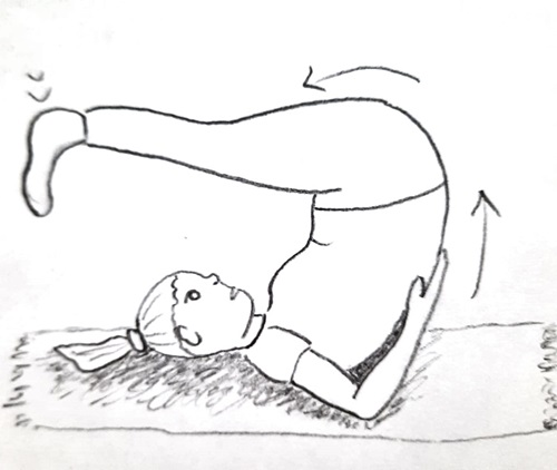 laita vasen käsi taakse lattiaa vasten, pidä oikea jalka suorana, ole tässä asennossa hetki.